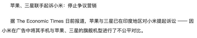 更有消息称小米在德国还被中国大唐诉讼专利侵权,在印度还被三星与苹果联合起诉争议营销!