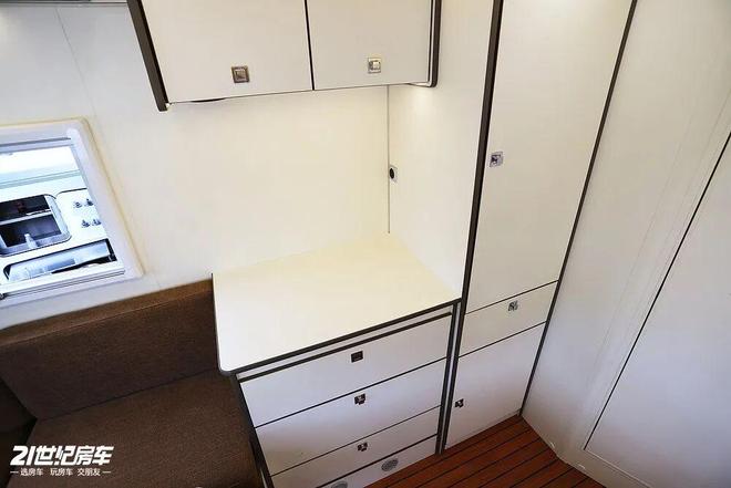 本车还拥有大量的衣柜和抽屉,储物能力非常优秀。顶部配备了多美达驻车空调,为车内时刻提供一个舒适的气温。