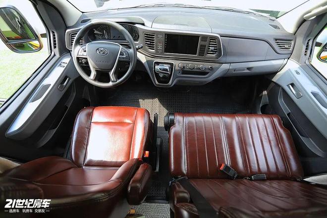 车身尺寸控制在长4950mm、宽1998mm、高2345mm,轴距3100mm,既符合蓝牌C照的驾驶标准,狭窄营地、城市街巷也能灵活穿梭。白、深绿双拼色的外观年轻时尚,停驻在营地内有很高的辨识度。