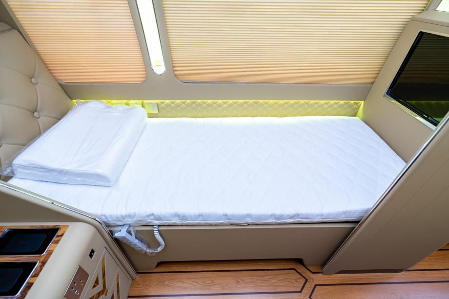 针对长途出行需求,该车配备的单人床发挥了重要作用。电动展开设计操作便捷,床面平整宽敞,能够为驾乘人员提供舒适的临时休息空间。在长途差旅中,驾乘人员可随时利用单人床进行短暂休整,有效恢复精力,提升整体出行体验,解决了传统商务车长途乘坐休息不便的问题。