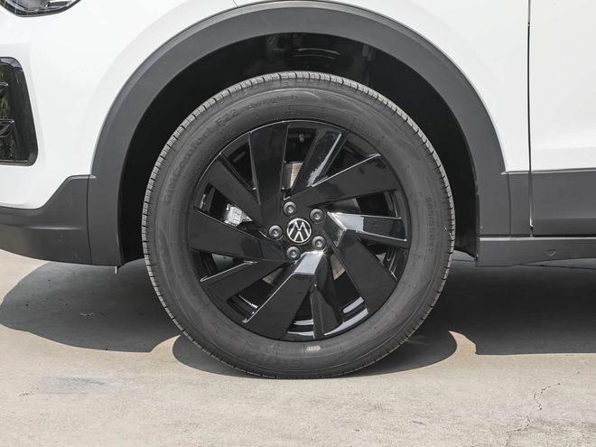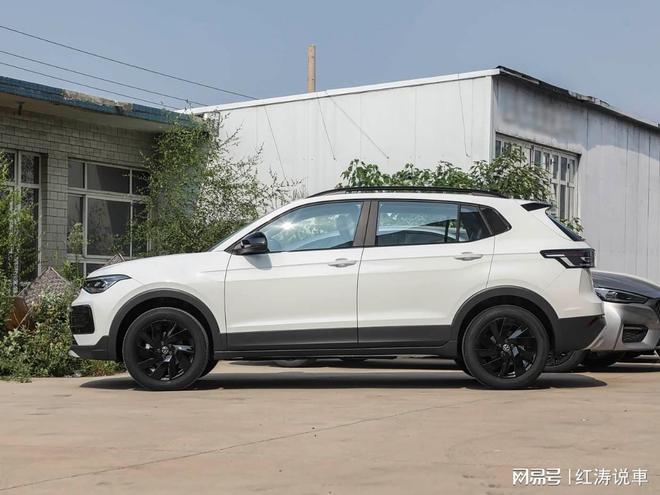 大众途岳新锐的车身造型短小紧凑,腰线硬朗,黑色行李架、黑色外后视镜、17英寸黑色轮毂等元素彰显着个性,车型末端留有小型扰流板,熏黑贯穿式尾灯内部结构精致,LED光源点亮后好看。