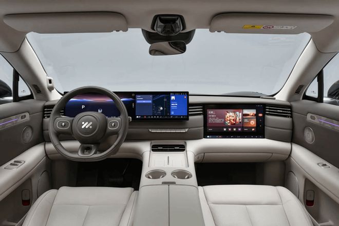 内饰方面,采用星际方舟设计语言,配备四辐式多功能方向盘、15.6英寸悬浮式中控屏、12.3英寸仪表、26英寸W-HUD、圆角矩形空调出风口。辅助驾驶方面,搭载天神之眼B-辅助驾驶激光版,含高速和城市领航辅助,以及全场景的泊车辅助。